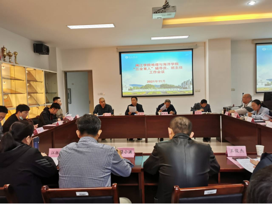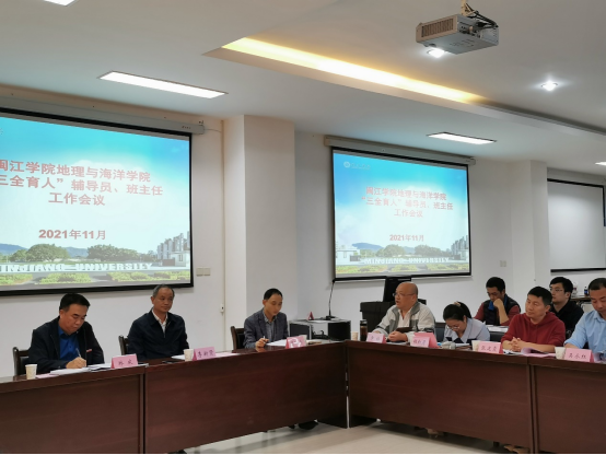 为贯彻落实全国高校思想政治工作会议精神、全国教育大会精神及beat365相关文件精神,深化“三全育人”工作,近日,地理与海洋学院于广成楼306会议室召开地理与海洋学院“三全育人”辅导员、班主任工作会议,副校长李新贤出席,学院领导及全体班主任、全体辅导员参会,会议由学院党委副书记唐郑勇主持。