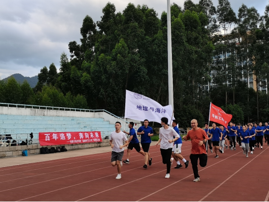 当日15时50分,2021级全体学生以及部分老师共赴致远田径场,随着辅导员一声令下,地理与海洋学院“健康两万五千里”班班接力跑正式开始。跑步的队形呈班班跟随式,班级的领跑人手执一杆鲜艳红旗,后面的学生以排成方阵的形式跟随。