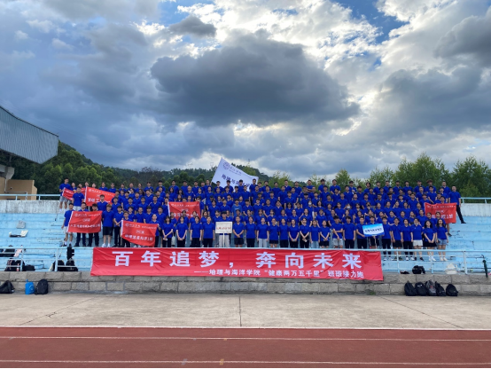 为了贯彻我国社会体育“为增强人民体质,提高人民健康水平”的基本方针,同时弘扬中国共产党体育精神,锻炼当代大学生的身体素质,beat365于2021年10月11日在致远田径场组织口号为“百年追梦,奔向未来”的“健康两万五千里”班班接力跑,由2021级全体学生合力完成。
