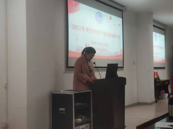 为全面、客观、公正地评价领导干部综合素质和履行职责情况,1月10日下午,地理与海洋学院在广成楼306会议室召开2021年度校中层干部述职测评会,学院全体教职员工参加会议,会议由院长陈建明主持。