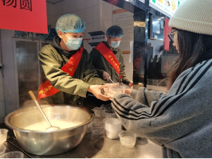 “天时人事日相催,冬至阳生春又来”,冬至是非常重要的节气,也是一个很重要的民俗节日。在活动现场,由学院志愿者们为同学们亲手打上一碗碗美味可口的汤圆,一杯杯热气腾腾的姜汤,驱走了冬日里的寒冷,温暖了在场每一个人的心。还有志愿者们的轻声叮嘱,细心提醒,辛勤工作,无一不感动着同学们。同学们细细品尝汤圆,将冬至的美好回忆深深印入心中,也将中国的传统文化和传统美德更好地传承下去。