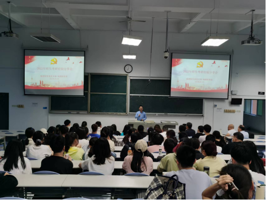 最后,陈郁青老师代表地理科学系的老师们对考研成功的同学们表示祝贺,并为积极备考的同学们打气,勉励同学们应该学习学长学姐们考研的那鼓坚持不懈的干劲,为自己的人生而努力奋斗!