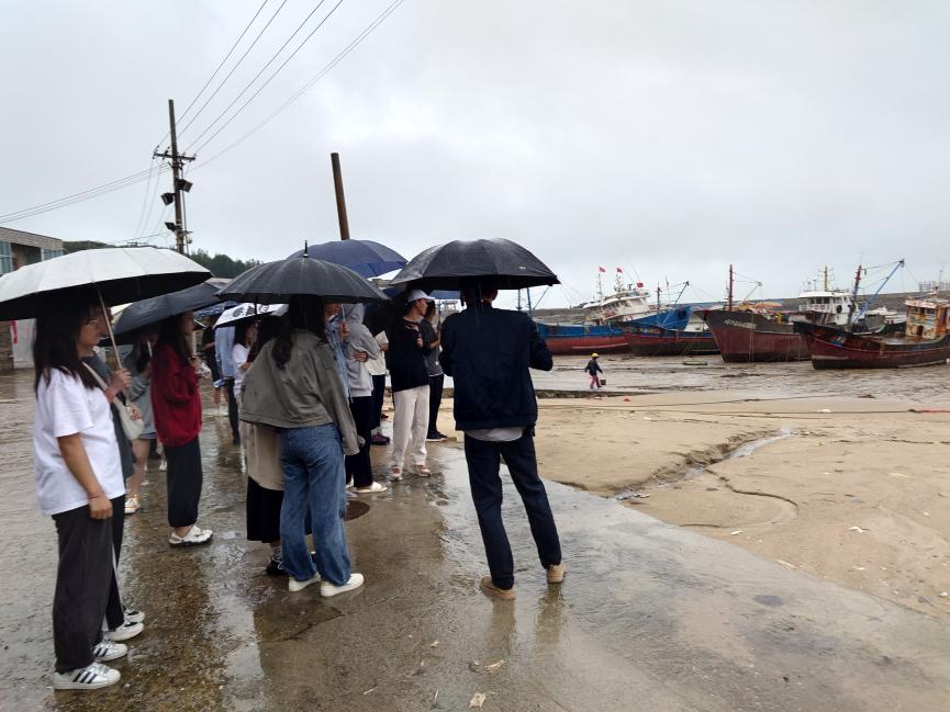 6月14日,海资师生冒雨抵达福州市平潭综合实验区东美村。在自然资源与生态环境局刘寒博士的带领下进行现场踏勘,深入了解了传统渔村经济开发现状,以及海洋资源对沿海乡村振兴的重要性,展望了海洋渔业资源和海洋旅游资源开发、利用的未来愿景。