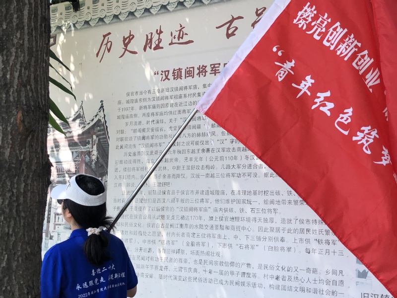 8月2日上午,实践队伍一行同闽侯县青年协会秘书长严丹老师一起乘车前往闽侯县上街镇侯官村。侯官村,有着悠久的历史,并有着“千年古村”的美誉,还保留下了唐代置县时的“城隍庙”“镇国宝塔”“古樟树王”,以及明清时期极具特色古民居,成为了侯官村推进乡村振兴事业的重要文化遗产。这次调研是对闽侯县侯官村进行一个总体的实地调研,前往侯官村村委会与对接老师进行之后公益课程相关安排的谈论,以及进村内进行考察安排实践场地。