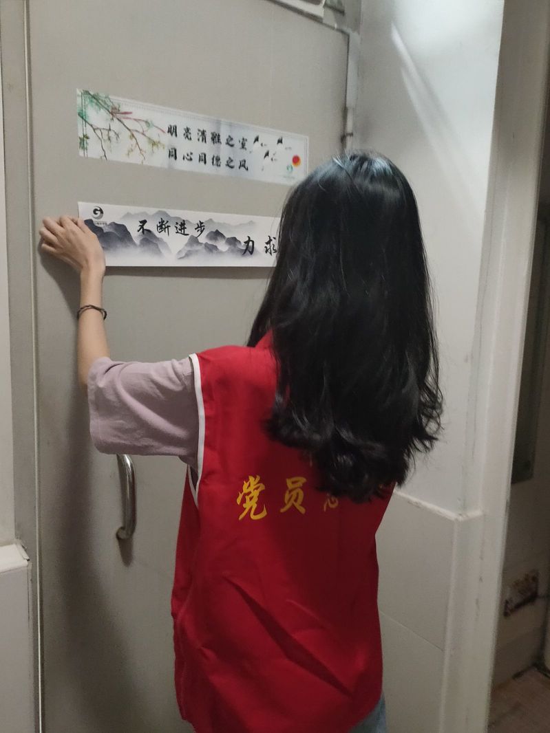 图八:图为辅导员与党员志愿者走访宿舍