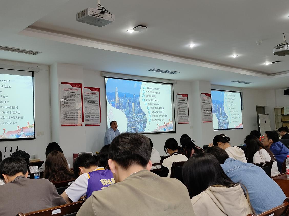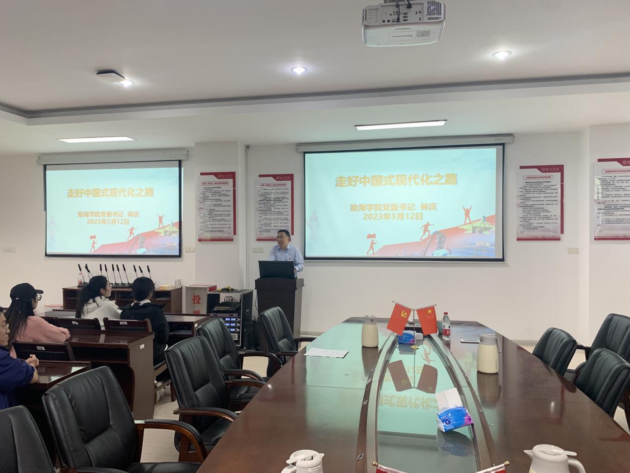 512日下午,地理与海洋学院党委书记林庆在广成楼306会议室为2023届毕业生作形势与政策讲座。
