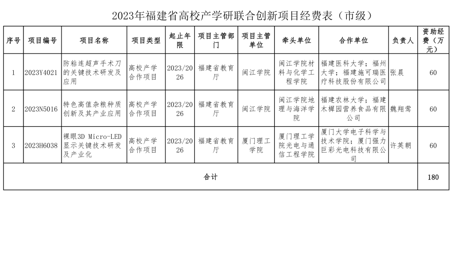 据悉,福建省高校产学研联合创新科技计划项目旨在促进我省高校之间优势互补和协同创新,加强人才、技术、资源整合,激活高校各类人才开展创新和成果转化的积极性,共同服务我省企业技术创新和产业高质量发展。