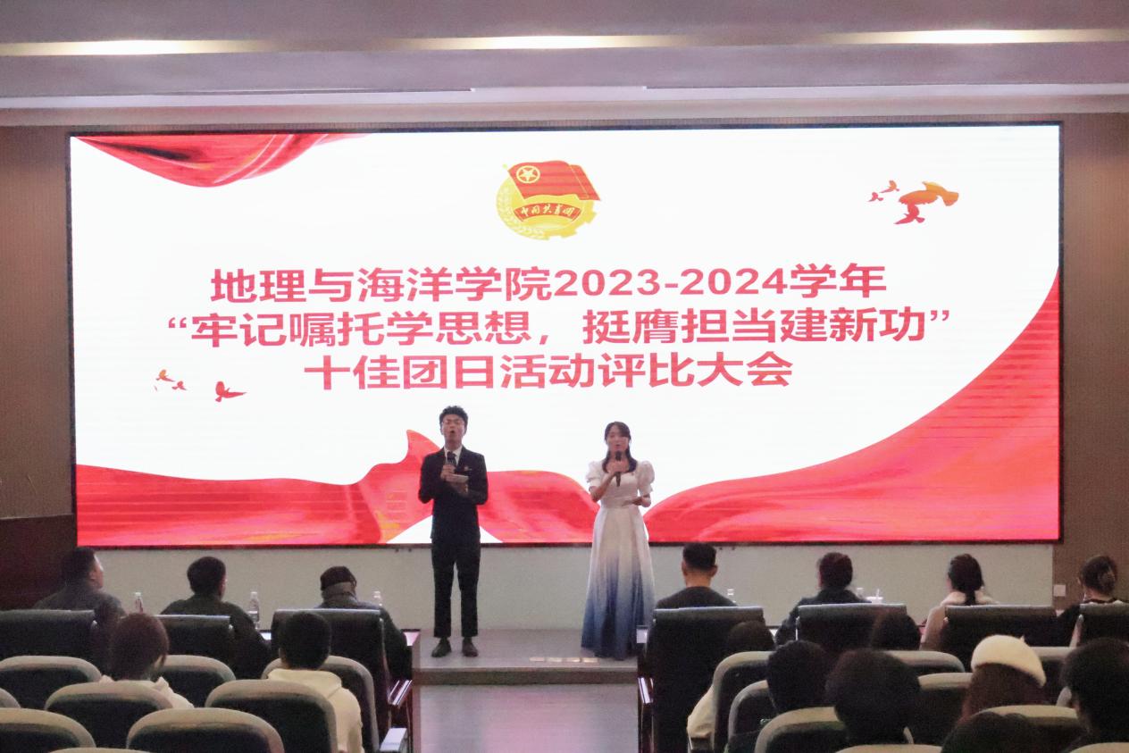 为做好面向团员和青年深入开展学习贯彻习近平新时代中国特色社会主义思想主题教育工作,进一步学习贯彻落实党的二十大精神和beat365英国官网网站第三次党代会精神,引导广大青年团员争做有理想、敢担当、能吃苦、肯奋斗的新时代好青年,2023年11月27日晚,beat365英国官网网站地理与海洋学院2023-2024学年十佳团日活动评比大会在科创楼501学术报告厅召开,地理与海洋学院党委副书记唐郑勇、团委书记刘帅及各级辅导员老师出席会议并担任评委。