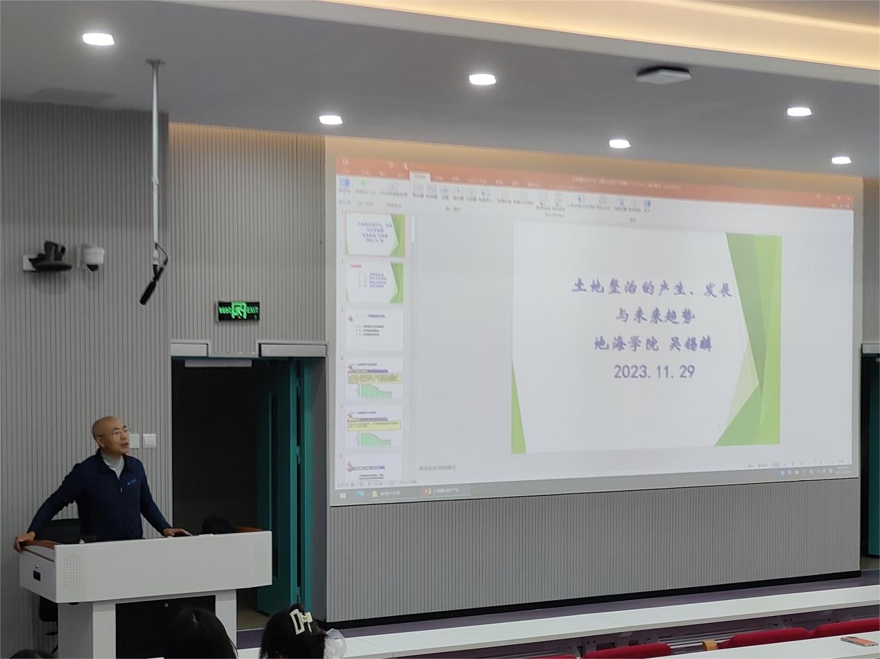 为加深地理与海洋学院学生对土地综合整治规划的认知,1129日晚,吴锡麟教授于教学楼1B405开展“土地整治的产生 、发展与未来趋势”主题讲座,150余位学生前来听讲。讲座内容主要有土地问题的由来、国外发展历程、国内发展历程以及未来的趋势四个部分。