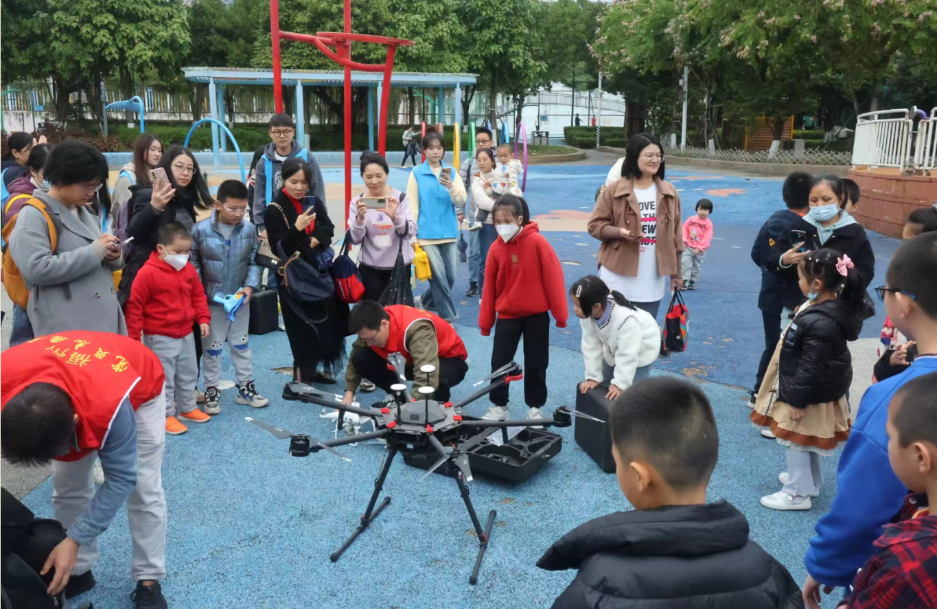 在活动现场,张建霞老师通过讲解,给孩子们科普了测绘技术的内涵及其在我国经济建设与国防建设中的重要作用,邓钟、陈思明、郑守住以及大学生志愿者们向孩子们展示了无人机测绘、卫星测绘、立体摄影测量等先进的测绘仪器装备,并进行现场实操演示,孩子们对测绘技术很感兴趣,非常好奇测绘仪器的测绘原理,在现场参与了无人机航空摄影的全过程。本次活动让孩子及家长们了解了测绘地理信息工作在国民经济和社会发展中基础性和先行性作用,同时也进一步增进了社会公众和广大青少年对测绘地理信息工作的理解与支持。