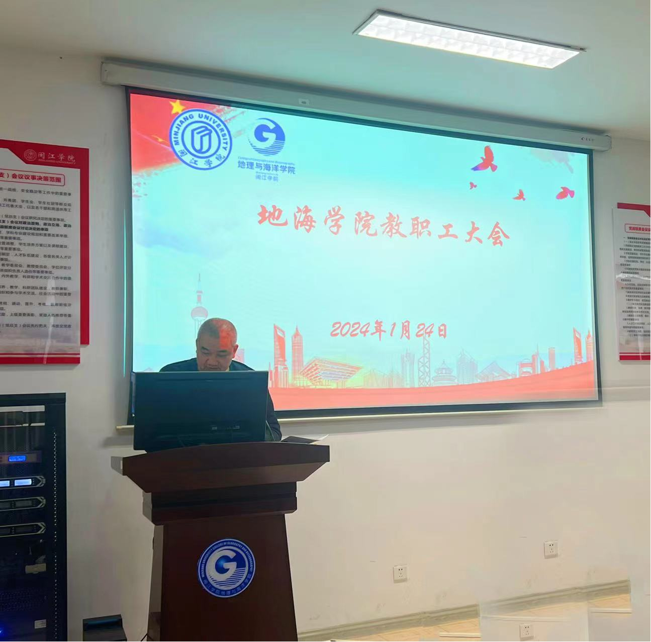 会上,地海学院院长陈建明做主题为《赓续奋进路,砥砺新征程》的地理与海洋学院2023年工作报告。大会充分肯定了学院在全面落实“一二三四五六”发展战略,扎实推进巡察整改工作,落实落细审核评估、专业结构优化调整、教师分类管理、硕士点培育建设等年度重大、重点任务上取得的新进展。