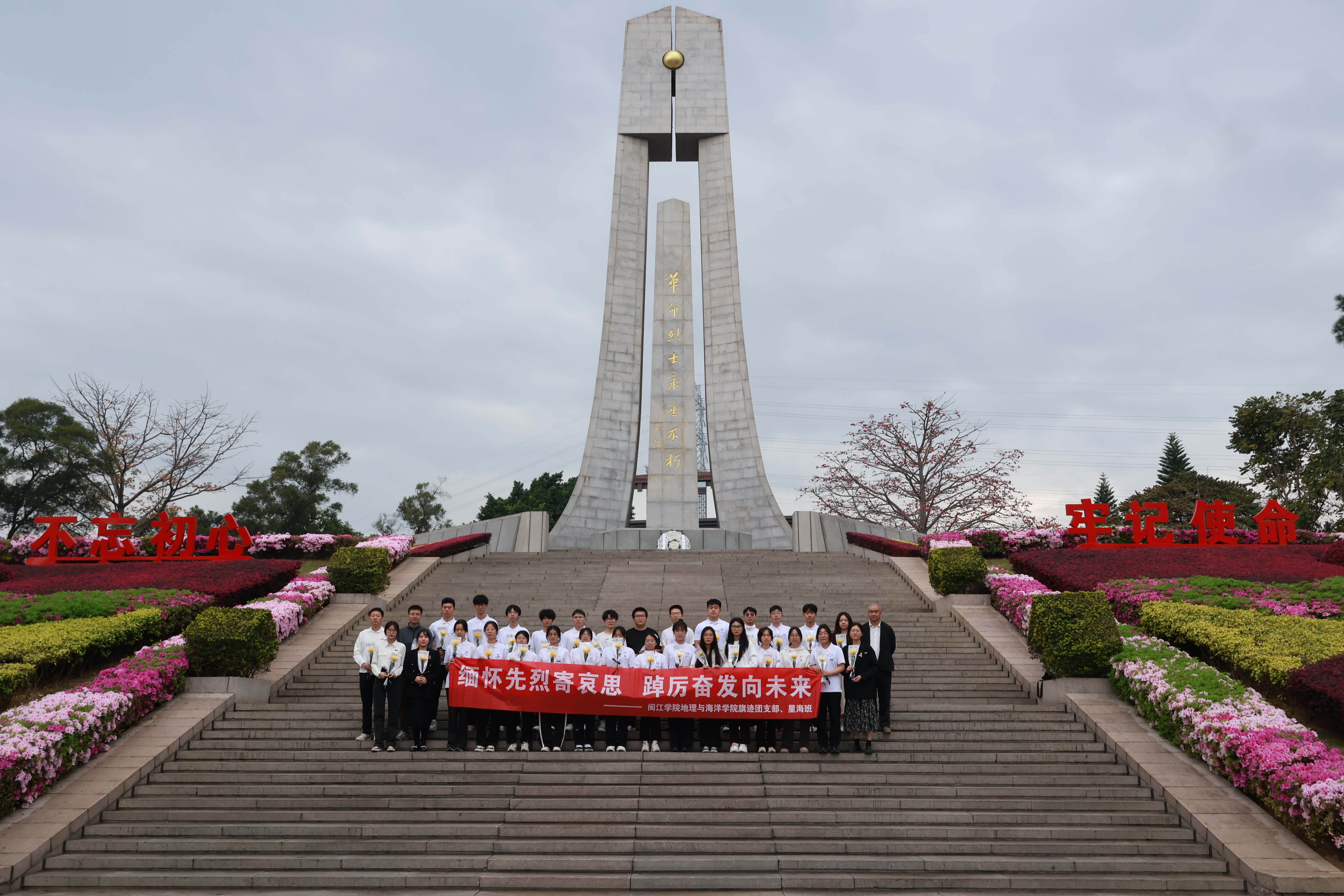 3月28日,地理与海洋学院组织师生代表赴福州文林山革命陵园开展“缅怀先烈寄哀思,踔厉奋发向未来”清明祭英烈主题教育活动。院党委副书记唐郑勇,辅导员陈越灵、潘苑、戴中武、林洁雨,校学生资助管理中心老师王静怡、柳晓芬及地海学院旗迹团支部成员、星海班成员、2022级海洋技术班级成员参与活动。