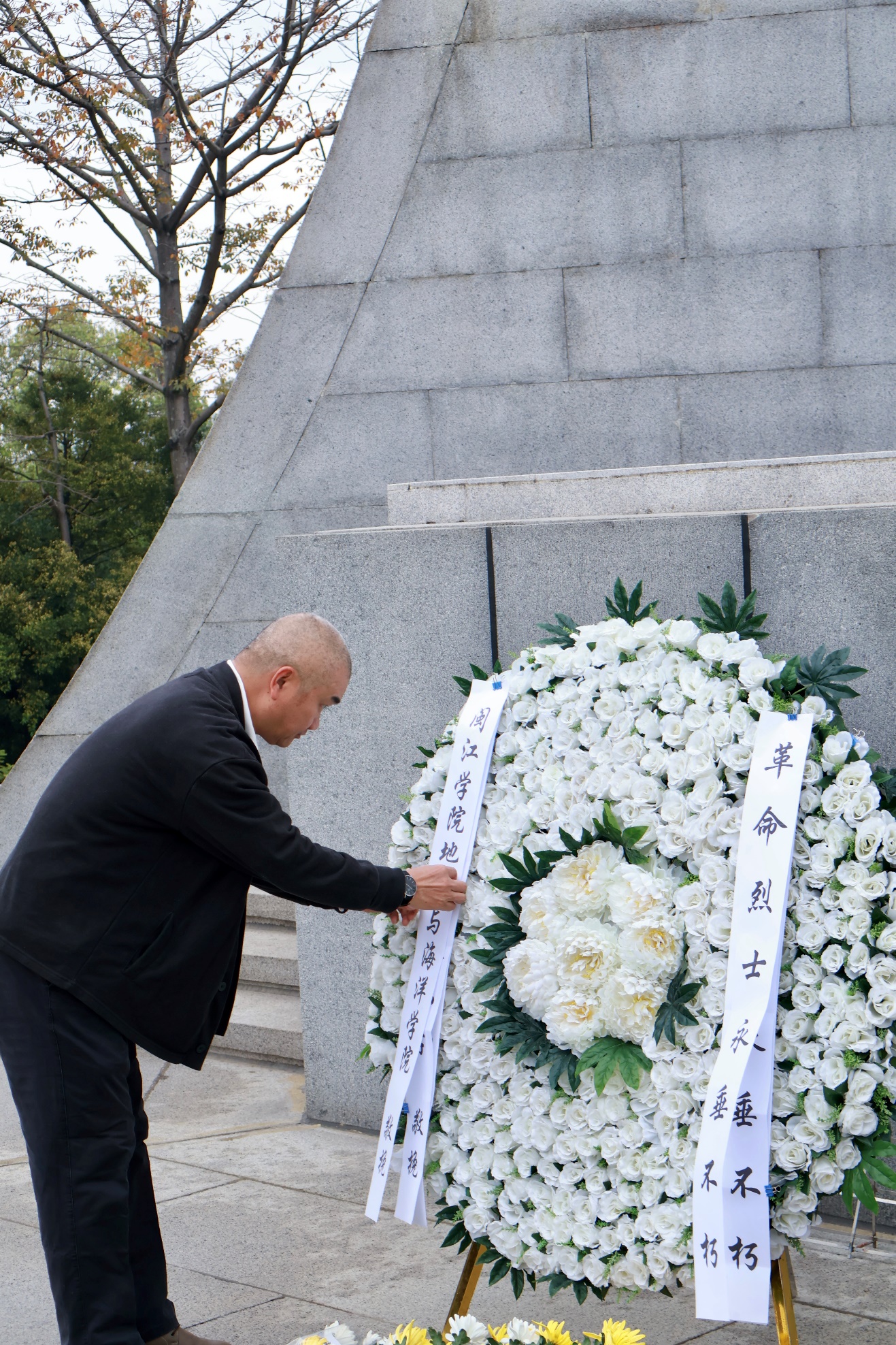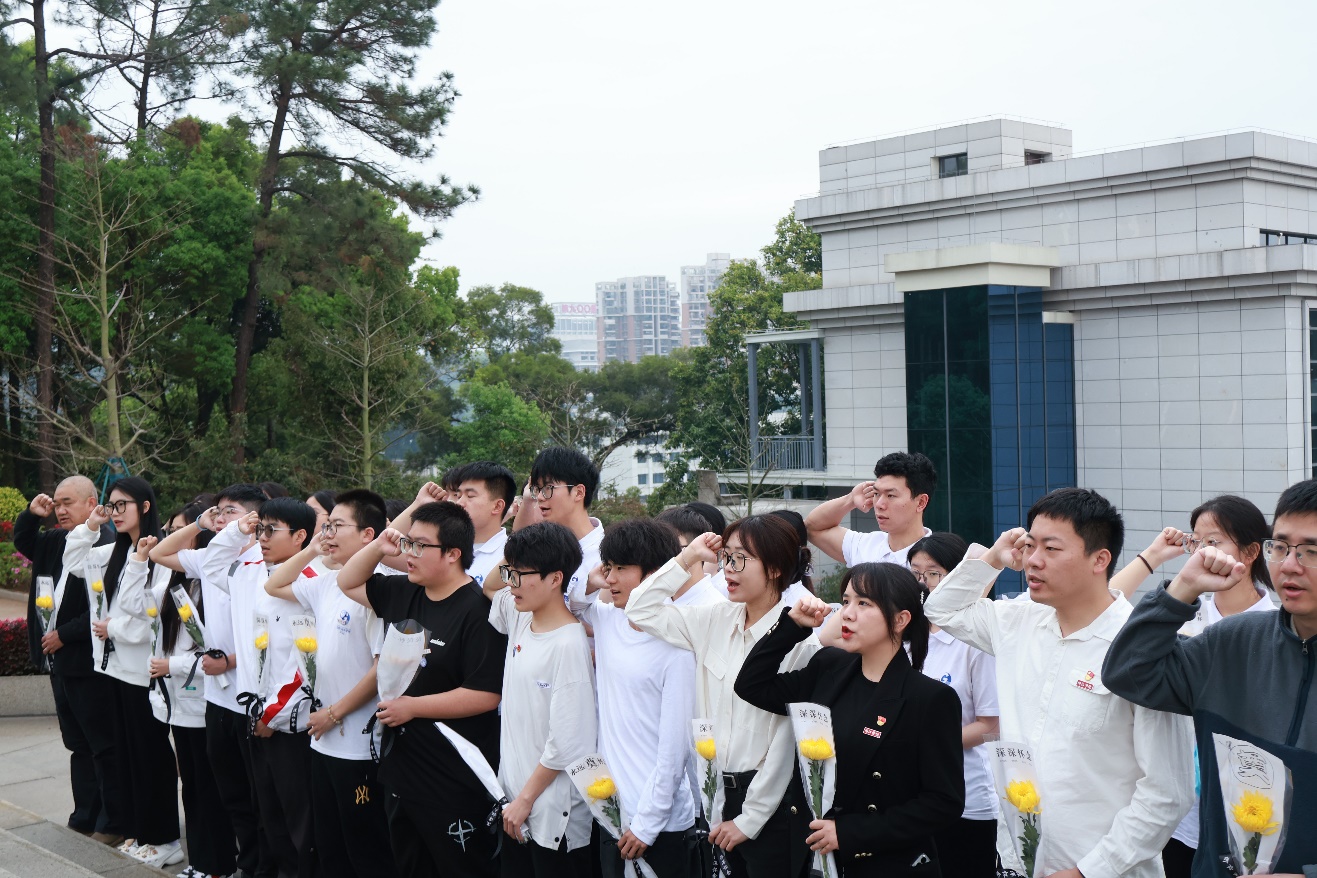 院党委副书记唐郑勇代表全体师生敬献花圈挽联,全体师生依次缓步绕行纪念碑瞻仰碑文和福州革命烈士英名墙,深切缅怀革命先烈,并依次敬献鲜花,表达对烈士的崇高敬意和哀思怀念。