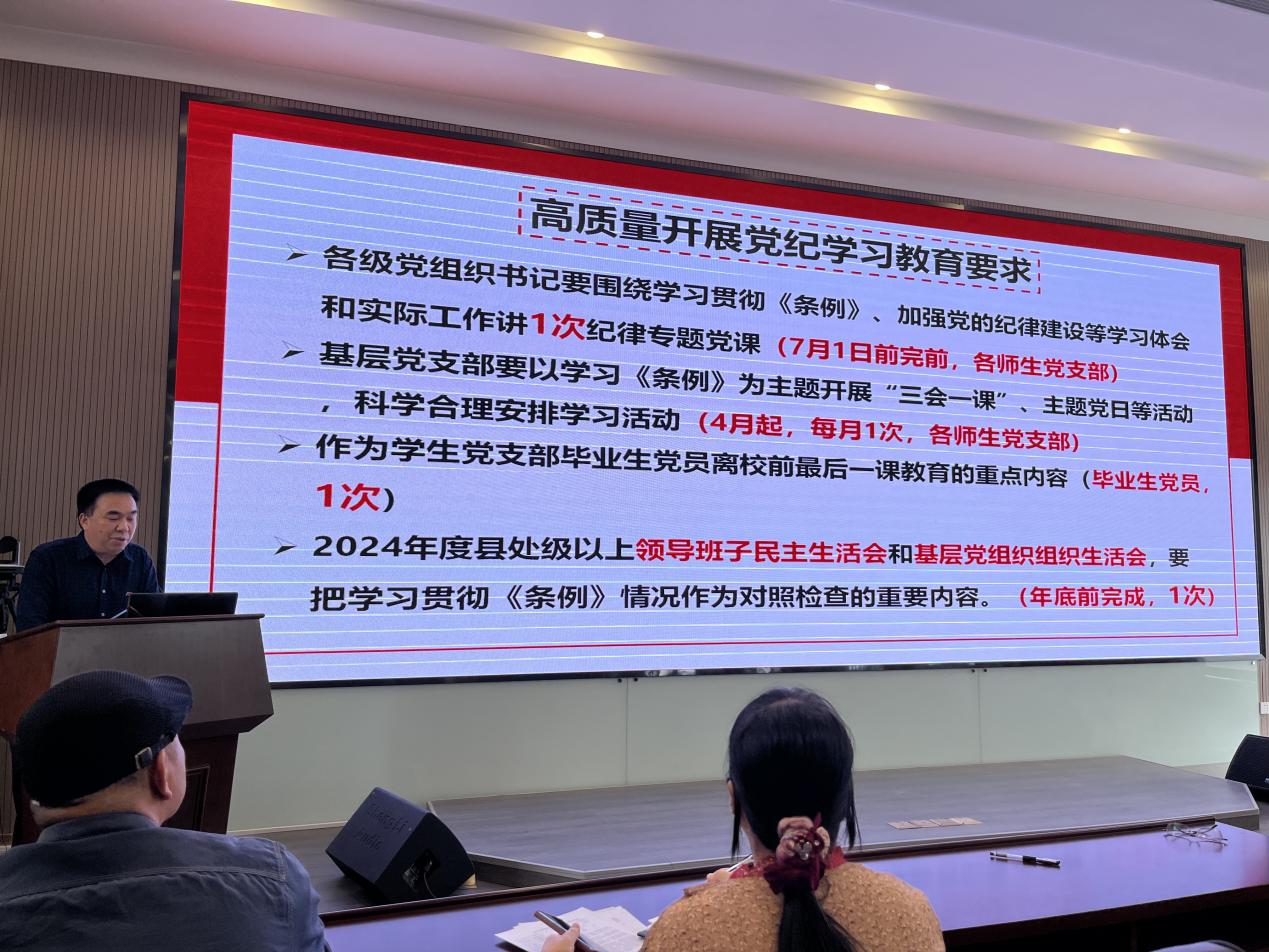 会上,林庆传达学习了习近平总书记关于开展党纪学习教育的重要讲话和重要指示精神以及《中共beat365英国官网网站委员会关于印发〈在全校党员中开展党纪学习教育的工作方案〉的通知》的文件精神。