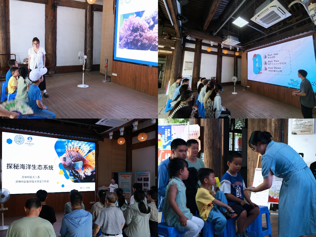 志愿者们通过开展守护蔚蓝海洋小课堂,向南街街道灵响社区公众科普了丰富多彩的海洋生物,并详细介绍了软体动物、甲壳类以及棘皮动物等海洋生物的特点;同时,结合今年世界海洋日的主题“保护海洋生态系统 人与自然和谐共生”,志愿者们向公众介绍了不同类型的海洋生态系统,重点强调了海洋生态系统目前面临的威胁,引导在场人员思考我们应该从何做起,呼吁共同保护好海洋生态系统,提升了公众认识海洋、关心海洋、保护海洋的意识。本次科普内容将知识与趣味相融合,从海洋生态系统的平衡与保护,到海洋资源的可持续开发与保护,再到海洋科学研究的前沿进展,每一个话题都引发公众浓厚的兴趣。志愿者们将科学实践与科普宣讲相融合,深化海洋科普教育,丰富科普教育内容,他们在知识、能力和心灵上都得到了宝贵的成长和收获。这段难忘且富有意义的经历,将激励他们在未来继续为科普教育贡献自己的力量。