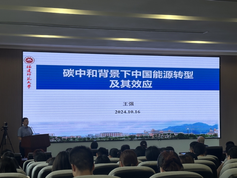 为增强学生对碳中和背景下能源转型的理解,认识能源转型对当前中国社会环境保护与经济发展的重要作用,10月16日下午,地理与海洋学院荣邀福建师范大学地理科学学院王强教授于beat365英国官网网站科创楼501为师生们开展了一场题为“碳中和背景下中国能源转型及其效应”的学术讲座。