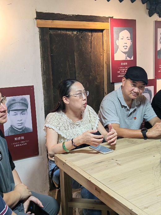 随后,教师党员们与洋尾村干部围坐一堂,就“庄寨+旅游”的发展模式展开了深入的交流与探讨。党员们结合专业视角,为当地文化旅游产业的创新发展提出了诸多富有前瞻性的见解与建议,党支部副书记、地理科学系主任陈郁青教授总结道:“同安镇庄寨建筑特色鲜明、文化底蕴深厚,具有丰富的历史文化价值、美学价值和建筑艺术价值,是永泰县不可多得的金名片。目前,在各级领导的支持和村干部、村民的努力下,同安镇的庄寨旅游已经打开了良好的局面。但是仍存在保护力度不足、庄寨文化挖掘不够深入、旅游基础设施薄弱、旅游项目单一等问题。”如何使同安镇的历史文化资源在保护的基础上得到更好的活化利用,进一步提升其旅游经济价值,陈教授认为:“首先要充分挖掘打庄寨的建筑文化、防御文化、耕读文化、家风文化等,打造庄寨文化品牌,讲好庄寨故事;其次要提高旅游发展定位,优化自然本底,完善基础设施,串点成线、以点带面,联动发展;要打造体验性旅游项目,完善旅游要素,延长旅游链条;同时要平衡好利益相关者关系,激发民众爱家爱乡情怀,做到全民参与,全域开发。”现场气氛热烈而融洽,展现了党建引领下的智慧碰撞与思想火花。
