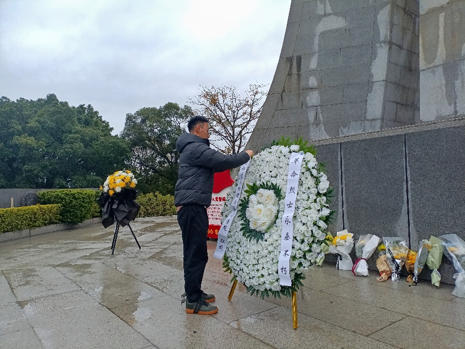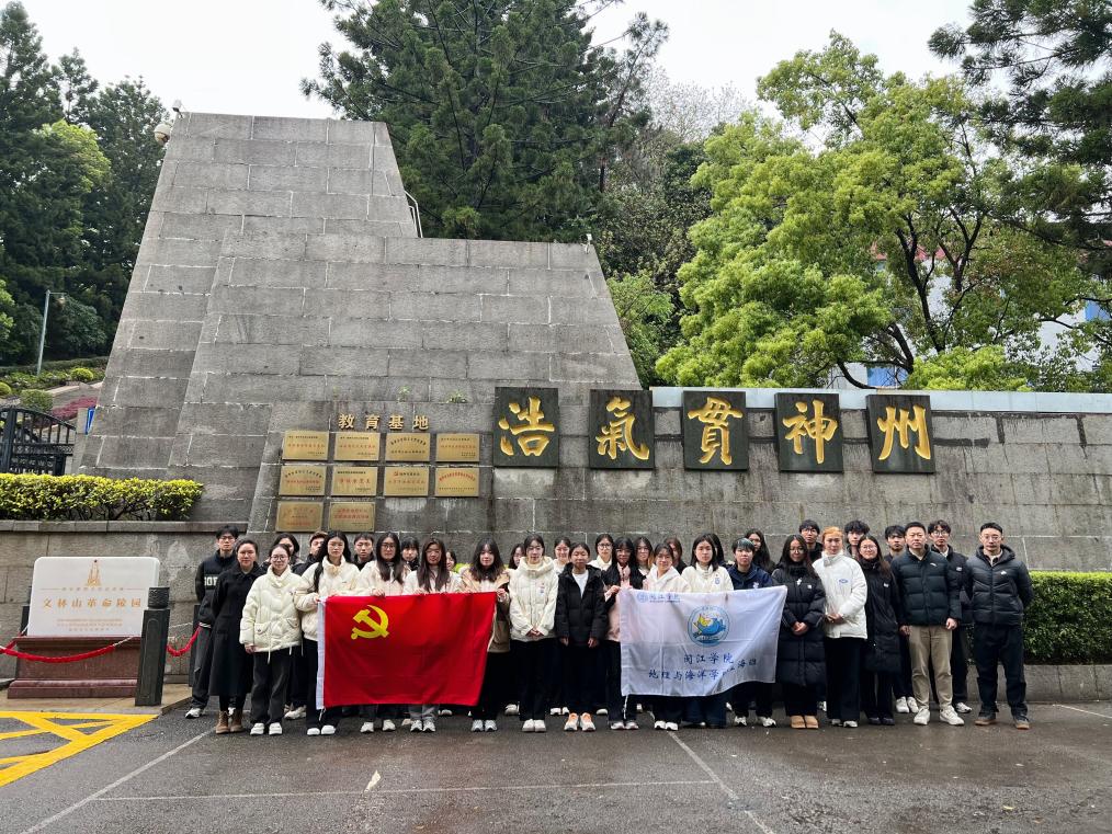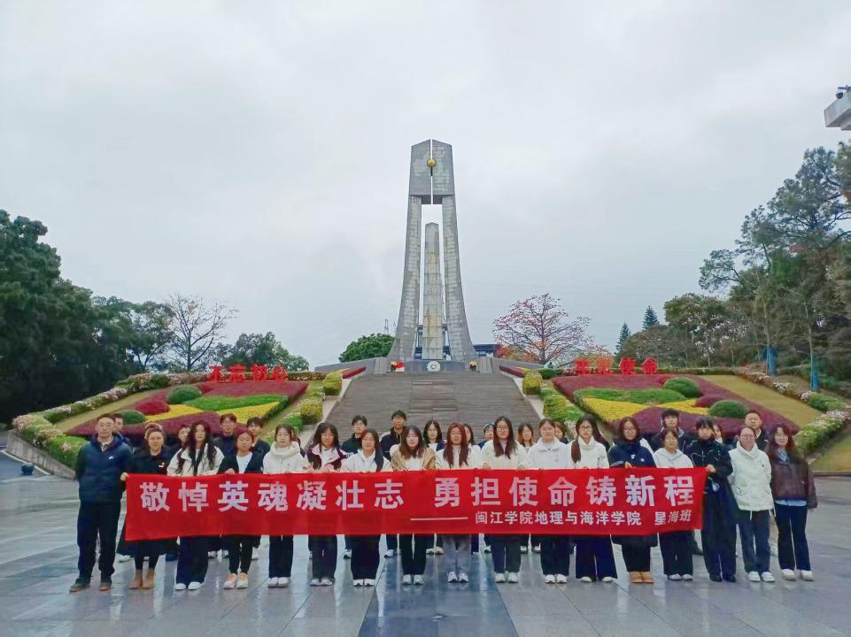 2025年 3 月 31 日,地理与海洋学院组织师生代表前往文林山革命陵园开展“敬悼英魂凝壮志,勇担使命铸新程”清明祭英烈主题教育活动。院团委书记刘帅,辅导员陈越灵、潘苑、戴中武及学生代表,星海班成员参与活动。