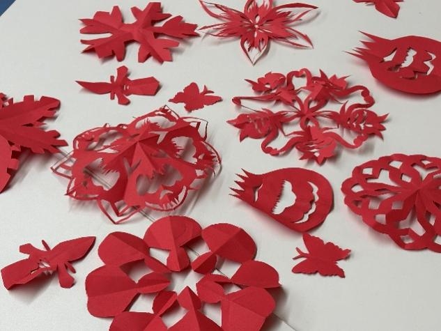 同学们还一起进行了剪纸活动,学习了剪纸艺术的历史渊源和文化内涵,每位同学都亲手制作了属于自己的剪纸作品,包含少数民族人物形象、特色建筑纹样等元素的剪纸作品。通过亲手剪制手拉手民族团结石榴籽同心等图案,参与者深刻体会到中华民族一家亲的文化意蕴。