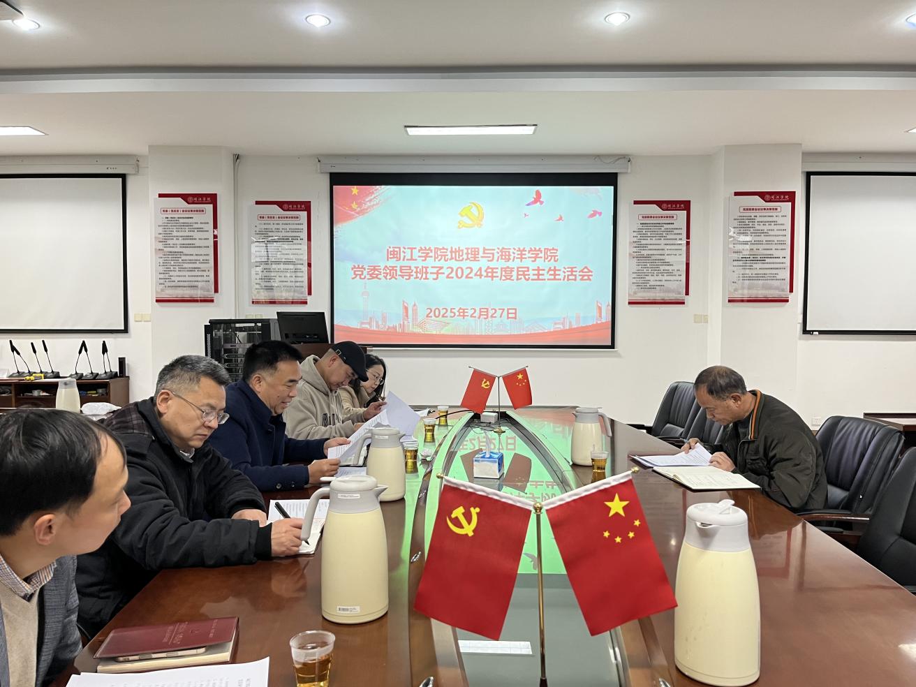 2025年2月27日上午,地理与海洋学院在广成楼B306会议室召开党委领导班子2024年度民主生活会。校党委常委、副校长李新贤莅临指导,地理与海洋学院党委领导林庆、唐郑勇、阎波杰同志参会,学院院长陈建明、纪检委员陈郁青列席会议。会议由学院党委书记林庆主持。