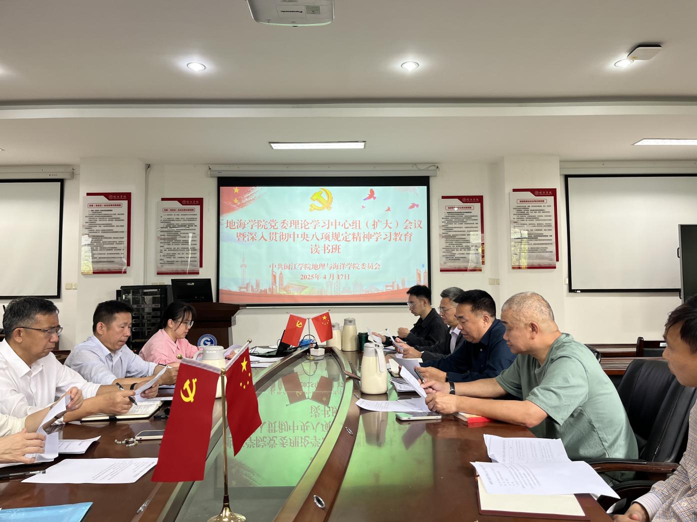 4月17日,地海学院党委举办深入贯彻中央八项规定精神学习教育读书班暨党委理论学习中心组(扩大)学习会。学院领导班子、党委委员、各党支部书记参会,会议由学院党委书记林庆主持。