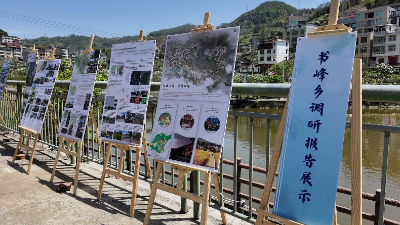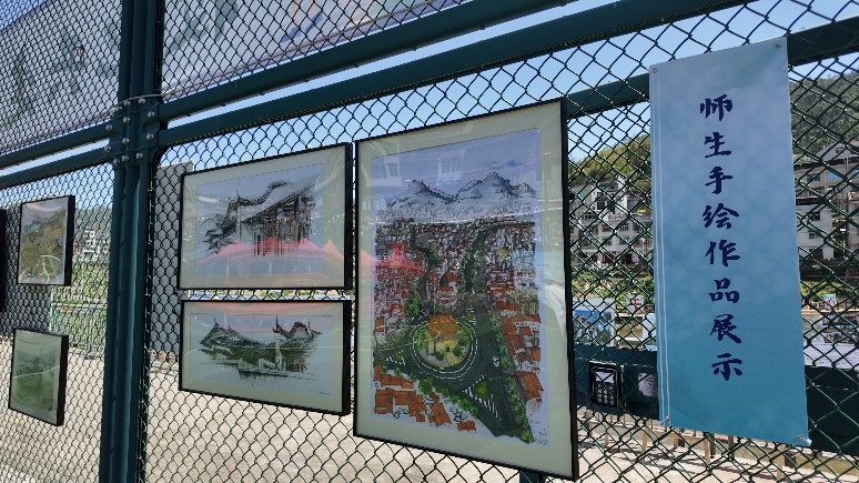活动前期准备阶段,师生团队携手开展校地共建成果展的场地布置工作。通过展示四十余幅手绘作品、15幅调研展板、4幅地标设计方案,生动呈现书峰地域文化特色,全方位向社会公众展现beat365英国官网网站与书峰乡的深度合作成果。