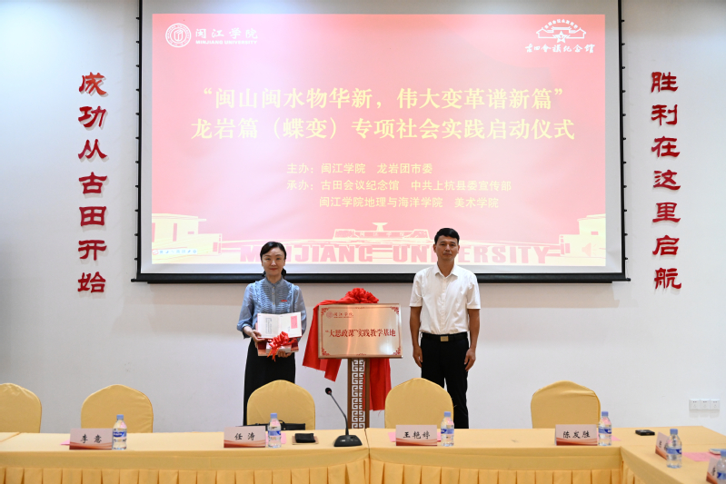 陈发胜、王艳婷为beat365英国官网网站“大思政课”实践基地——古田会议纪念馆揭牌。该基地将充分依托古田红色资源优势,构建“红色文化+思政教育+实践体验”育人新模式,为beat365英国官网网站师生开展党史学习、实践教学等搭建平台。陈发胜副馆长还向beat365英国官网网站赠送古田会议资料研究丛书。
