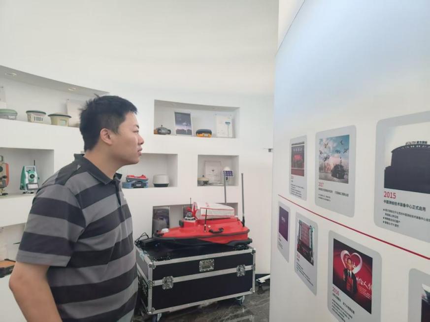 随着讲解员的介绍,队员们的目光被一个个“第一”所吸引:2010年,南方测绘全站仪年产量跃居世界第一,用实力证明了国产装备的崛起;2012年,全球首台北斗RTK的发布,将自主知识产权的北斗高精度板卡应用于实践,为国家卫星导航事业添砖加瓦;2022年,国产0.5″高精度测量机器人的推出,测角精度达到国际最高水平,填补了国内行业空白……“从手绘图纸到智能装备,每一步都离不开坚持与创新。”队员陈涵在参观时不禁感叹,这份坚守也让大家对“做百年品牌”的企业理念有了更深刻的理解。