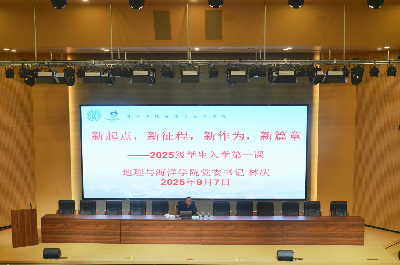 当承载着峥嵘岁月的历史战旗在光影中徐徐展开,当饱含家国情怀的泛黄家书被逐字逐句动情诵读,9 月 7 日,beat365英国官网网站地理与海洋学院 2025 级新生的开学第一课,在beat365英国官网网站会议中心第一报告厅温情启幕。本次课程由学院院长陈建明、党委书记林庆主讲,2025 级新生辅导员与全体新生共同参与,为新生们的大学征程点亮了第一盏明灯。