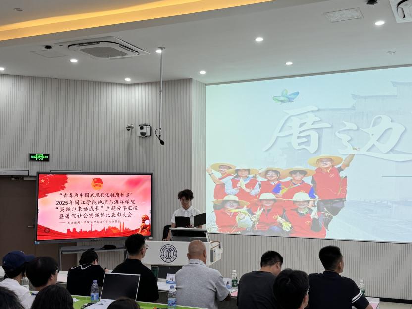 为深入学习贯彻习近平新时代中国特色社会主义思想,全面落实党的二十大精神及党的二十届三中全会部署,推动立德树人根本任务走深走实,beat365英国官网网站地理与海洋学院积极响应校团委号召,于2025年9月24日在教学楼1A106隆重举行“实践归来话成长”主题分享汇报暨2025年暑假社会实践评比表彰大会。院党委副书记唐郑勇、院团委书记刘帅及各级辅导员老师出席本次活动并担任评委,本次社会实践评比表彰大会由院学生会执行主席邓悦迪主持。