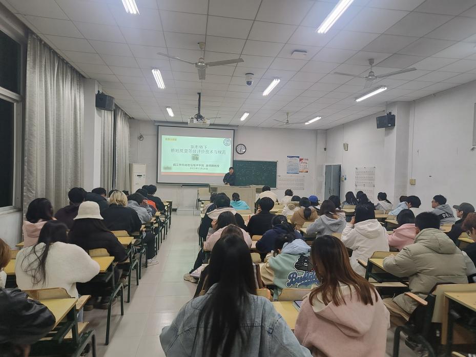 整场讲座内容翔实、逻辑清晰,既有理论高度,又紧密贴合实践需求,有效拓宽了同学们在国土空间治理与农业资源评价领域的专业视野。同学们纷纷表示,通过此次学习不仅加深了对国家耕地保护政策与技术路径的理解,也进一步认识到自身在服务国家粮食安全与乡村振兴战略中所能承担的责任与使命。
