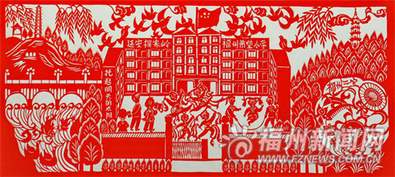巍巍宝塔山下,革命圣地延安也在传扬着福州教育帮扶的动人故事。在这张杨家岭福州希望小学学生巧作的剪纸中,福州的白塔与延安的宝塔遥相呼应,见证榕延两地教育部门二十多年的友谊。