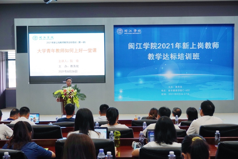 陈兴明副校长代表学校对新教师加入学校教师教学队伍表示热烈欢迎。他指出,举办新上岗教师教学达标培训,有助于青年教师规范教学基础,创新教学实践,体现学校对新上岗教师的关心关爱,学校将采用导师制和“三结合”制的办法帮助新教师提升教学能力和水平。同时希望新教师能珍惜培训机会,并在未来发展中能够不断进阶,从新教师向着骨干教师、教学名师乃至大师不断提升自我,成为像陶行知、潘懋元先生那样能够塑造学生品格、品行、品味的“大先生”。