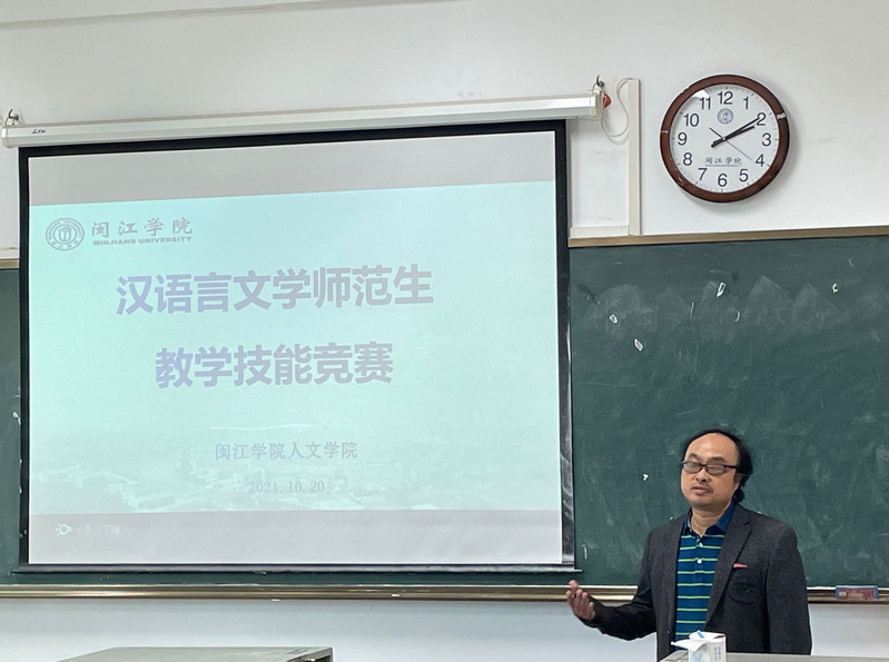 中文系系主任陈开晟老师的开场白拉开了赛事序幕,他希望通过这次比赛加强师范生的实践应用能力,最终筛选出优秀的选手参与校级、省级大赛,同时期待同学们以饱满的精神、昂扬风貌参加比赛,并预祝将来师范生教学技能大赛能越办越好。