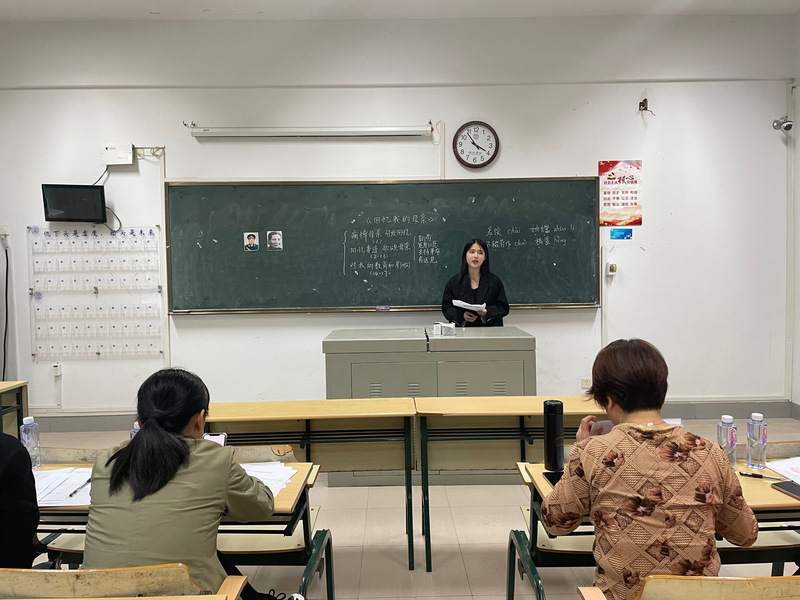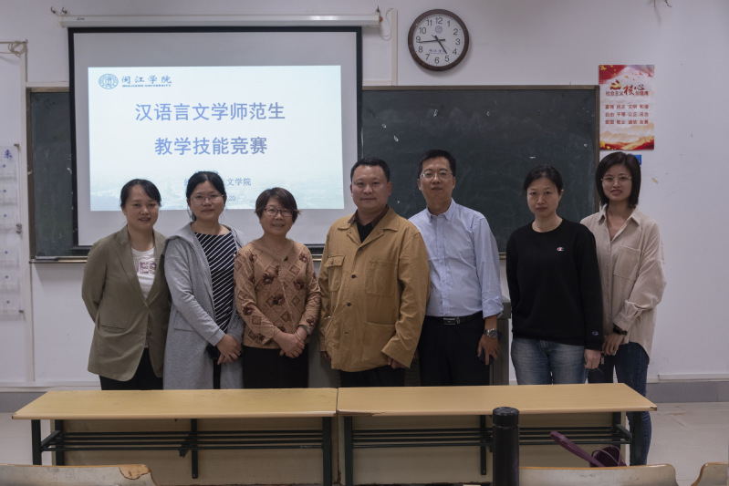 本次比赛有幸邀请了校外专家鲁卫鹏老师,以及汉语言文学师范教研室陈毓文老师、张胜璋老师、黄长华老师、刘敬老师、董小征老师作为评委。比赛分两个小组开展,主要围绕模拟上课、板书与现场答辩三个部分展开考核。