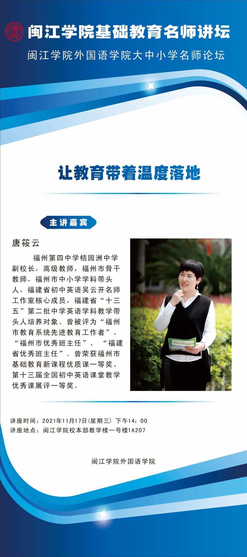 【闽江论坛预告】唐筱云:让教育带着温度落地