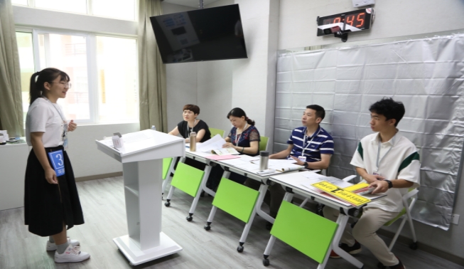 复赛分为初中语文、英语、音乐、物理四个学科组别,教学设计和课件制作、模拟课堂教学、专家提问等环节构成