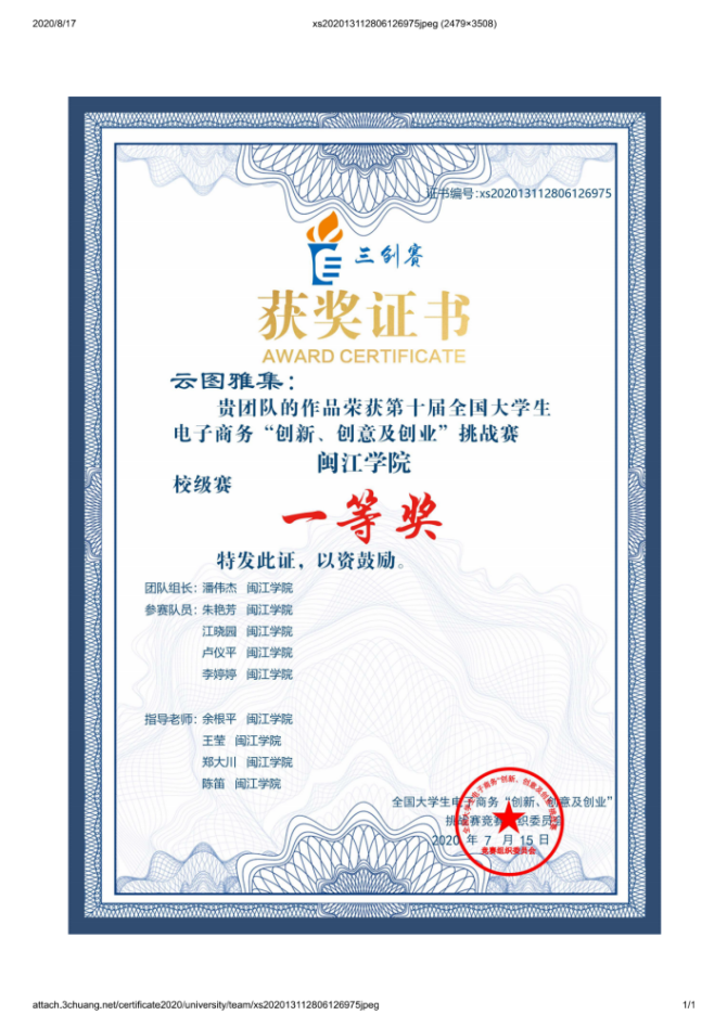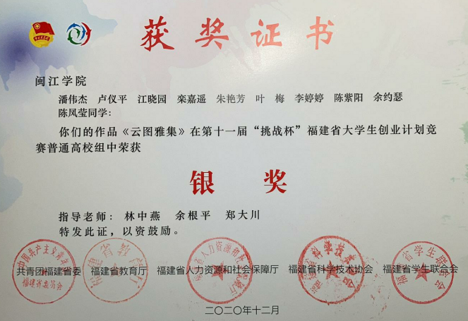 团队带领云图雅集项目参加创新创业大赛,荣获三创赛校赛一等奖、省赛二等奖、挑战杯省赛银奖等成绩。积极申报“农村电商精准推广虚拟仿真实验教学项目”,将真实的农村电商精准推广模式导入到情景式实验教学中,让学生通过虚拟仿真实战演练,迅速掌握农村电商精准推广的全流程操作,并顺利获批软件著作权。