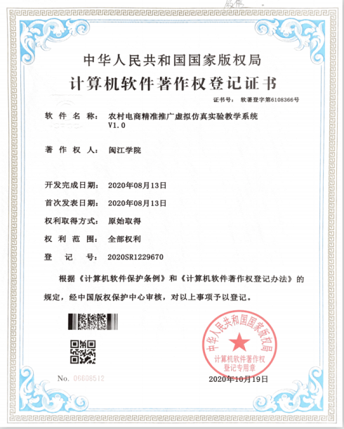 农村电商精准推广虚拟仿真实验教学系统软件著作权登记证书