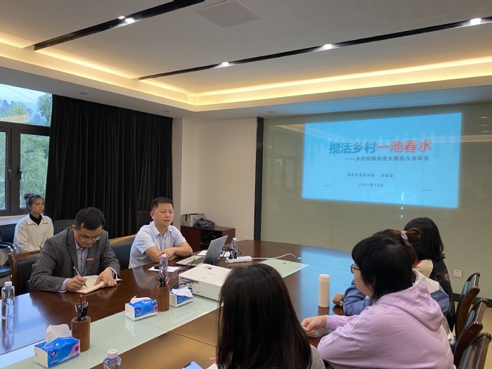 讲座上,刘昌成从当前各地开展乡村创新创业大赛的基本情况及特点、乡村创新创业大赛对产业振兴的意义以及对举办大赛的建议三个部分展开。他提到,在乡村振兴战略的大背景下,举办或参加乡村创新创业大赛对于筛选储备产业振兴种子、培育乡村振兴主体、搭建各类要素向乡村聚集的平台、建设产业振兴先行先试的示范点有十分重要的意义。他分享了在罗源县挂职时举办乡村创新创业大赛的工作经历,从项目基本情况、亮点及效益深入分析了大赛中的部分优秀案例。对于参加此类大赛,他提出了五点针对性的建议:一是要因地制宜探索创新创业项目,立足于当地资源禀赋和特点;二是要充分考虑对当地经济发展,村民就业的带动性;三是要梳理盘整可供开发的资源资产;四是建立完善相应的保障机制,如基础设施、金融保险制度等;五是要对正在落地或已落地项目的持续关注与指导。