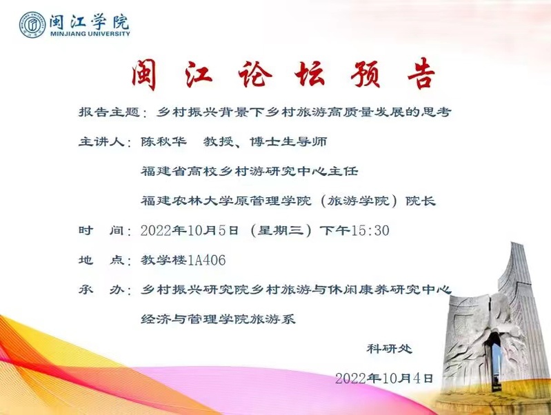 【闽江论坛预告】陈秋华:乡村振兴背景下乡村旅游高质量发展的思考