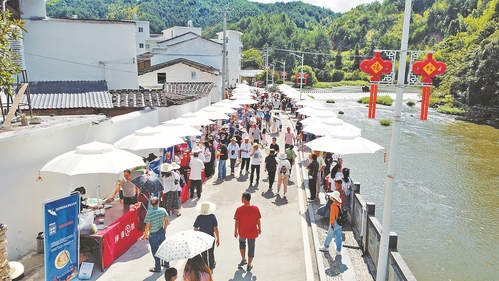 在屏南县屏城乡前汾溪村,一场两岸美食风味文化节吸引了来自四面八方的游客。(资料图片)