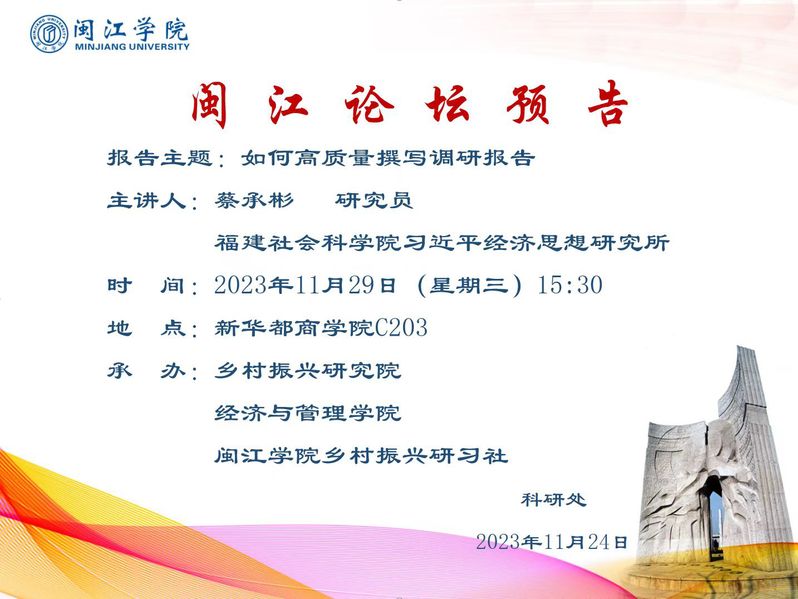 【闽江论坛预告】蔡承彬:如何高质量撰写调研报告