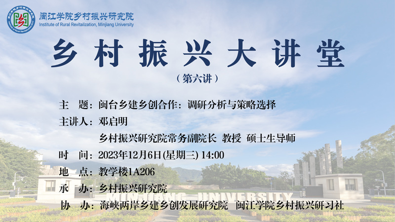 【乡村振兴大讲堂】邓启明:闽台乡建乡创合作:调研分析与策略选择