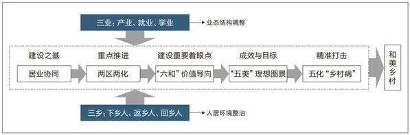 “和美乡村”建设应立足农民多元生产、生活需要,以居业协同为基础,统筹推进县域村镇居住社区、就业园区的协同发展。通过对人居空间整洁化、田园化,产业空间集约化、园区化,生态空间文明化、优美化,文化空间地域化、多样化的综合提升,实现组织集中化、产业园区化、土地集约化。
