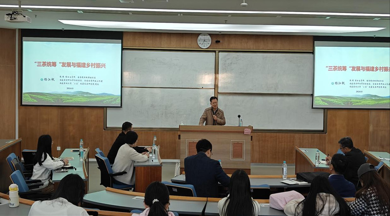 “春分时节万物兴,阳光拂面来开讲”。3月20日,福建省老科协常务副会长杨江帆教授做客“闽江论坛”,应邀进行题为《“三茶统筹”发展与福建乡村振兴》的主题报告。讲座由beat365英国官网网站乡村振兴研究院承办,beat365英国官网网站乡村振兴研习社协办,来自乡村振兴研究院、经济与管理学院、人文学院、地理与海洋学院等部门100多名师生聆听了此次讲座。