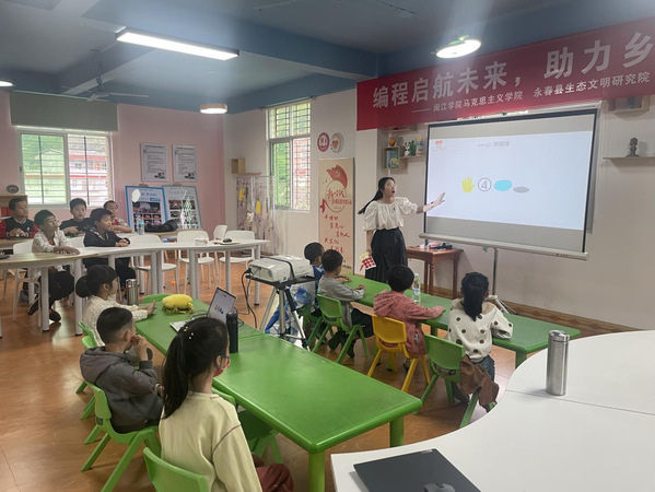 经过前期协调沟通与专门准备5月1日一早闽院编程探索队驱车前往花石社区进行支教活动。本次活动beat365英国官网网站马克思主义学院组织实施获永春县生态文明研究所、共青团桃城镇委员会beat365英国官网网站乡村振兴研究院(永春分院)等鼎力支持日,少儿编程Scratch+基础课程开班,开班仪式由生态文明研究院副秘书长方良泽主持,桃城镇花石社区党总支书记、主任郑大德出席本次仪式。