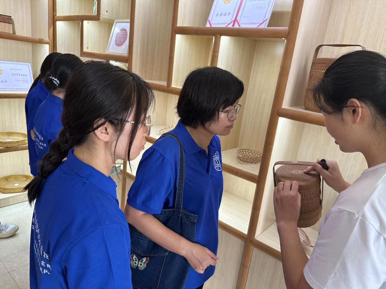 实践队首先抵达永春县旅游集散中心,在乡村振兴馆与研学大楼进行实地考察与交流座谈。在乡村振兴馆内,实践队成员在讲解员的引导下,参观了永芳纸织、永春漆篮、老醋坊、陶瓷文创馆及香道体验等五大非遗文创体验区,对永春县独特的非遗文化传承与旅游资源现状有了全面而初步的认识。
