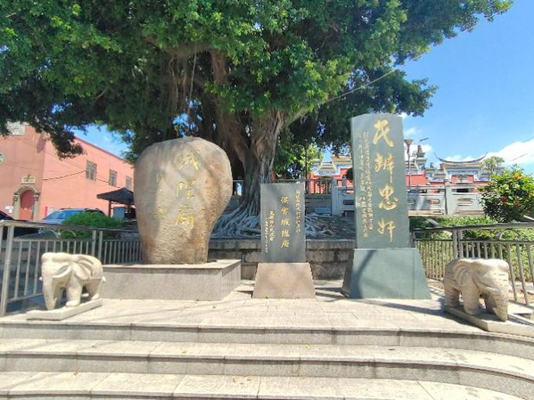 侯官城隍庙的存在,也正是千年前,侯官县治在侯官村的有力证明之一。在庙前,一方刻有“城隍庙”字样,落款“陈立夫”的石碑,据村干部王国峰称,系国民党元老陈立夫在百岁之时,在台湾亲笔书写赠予侯官城隍庙的手迹。他晚年矢志于祖国的统一,竭力推动海峡两岸的交流。村干部王国峰还向实践队员们介绍,城隍庙大殿殿面阔三间,抬梁穿斗式木结构架,建筑基本还保持着明清时期的风貌。其中,大殿两侧的花岗石圆石柱,是从唐代留存至今,历经千年沧桑。实践队员们触摸花岗石圆石柱,感受历史的温度,而这大殿正中供奉的城隍便是号称“福建都城隍”的周苛。汉王四年,项羽领兵围困荥阳,刘邦弃城遁逃,命周苛守城。周苛讥讽项羽等楚人,项羽闻言,极为愤怒,将周苛烹杀。西汉建立后,刘邦感念周苛的忠义,封他为郡县之神,传旨命天下郡县各附城立庙奉祀。城隍信仰在南北朝时兴起,初唐时在江南地区盛行,到中唐时已然发展成为全国性的民间信仰,故而唐初设立侯官县,兴建城隍庙,周苛就被迎入其中,成为了当地的城隍。城隍掌赏善罚恶,城隍文化与吏治廉政有着十分密切的关系。城隍庙内有许多富含城隍历史文化内容的木雕刻,如“誓守荥阳”“忠贞不屈”“赏罚分明”“执法必严”等木牌匾,这些木牌匾上的雕刻人物栩栩如生,情节生动形象,丰富了城隍赏善罚恶、勤廉爱民的文化内涵。