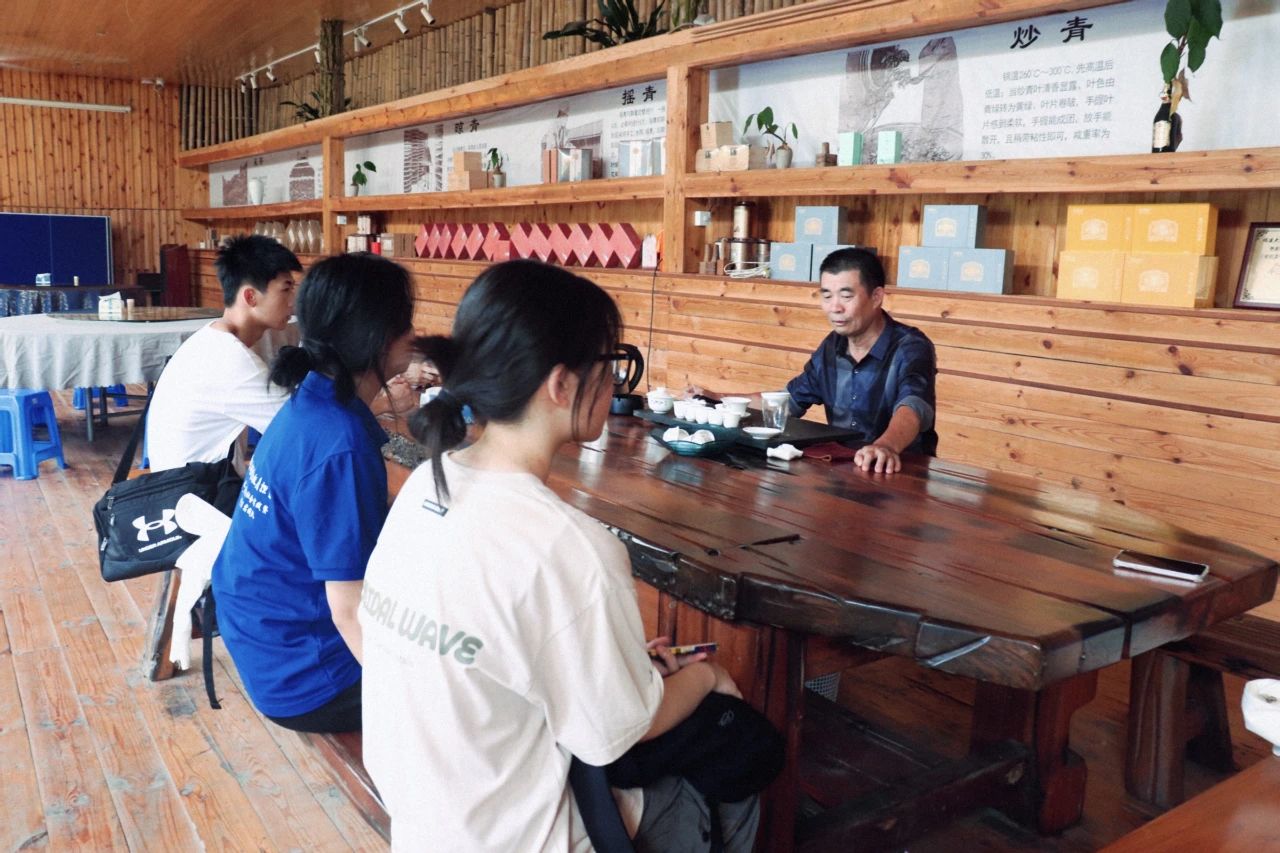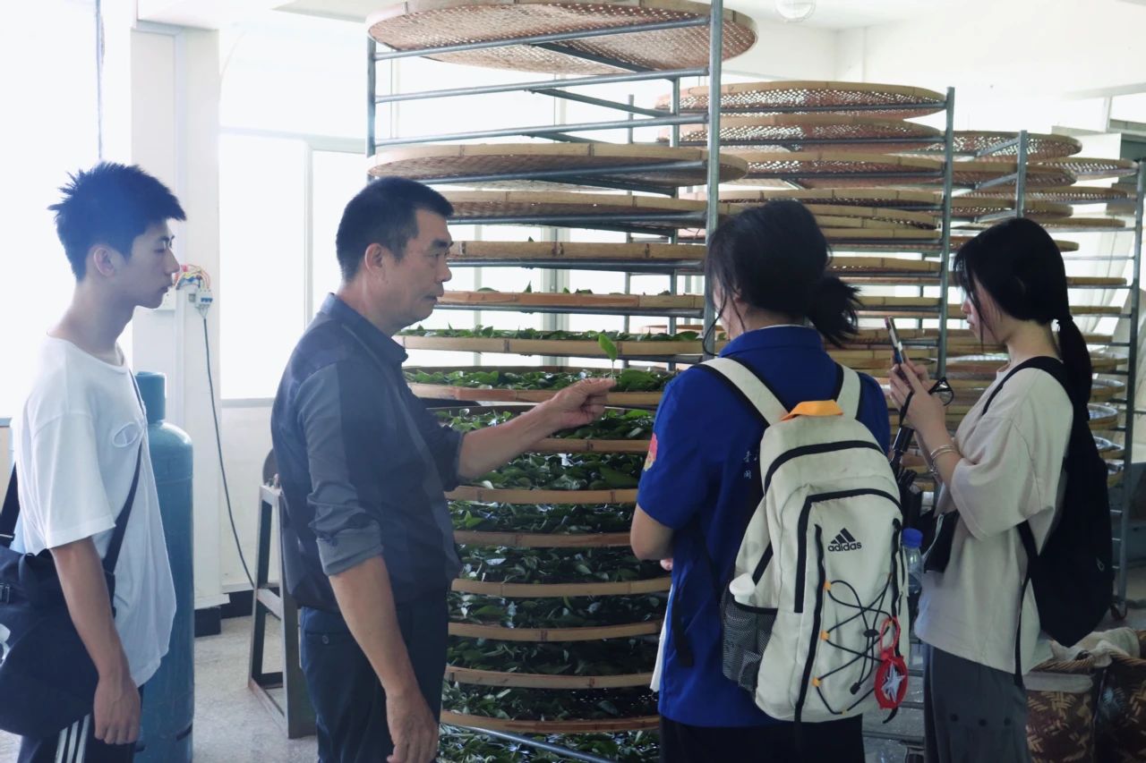 吴副总带领队员们参观了制茶车间,水仙茶茶叶将在此经历一系列的加工,最终变成实践队员们杯中的香茗。制茶工艺包括杀青、揉捻、烘干等多个环节。首先,茶叶需要经过高温杀青,以去除茶叶中的部分水分和草酸,保留茶叶的香气。接着,通过揉捻,茶叶的细胞破裂,茶叶的香气得以释放。最后,经过烘干,茶叶的水分被进一步降低,茶叶的形态和香气得以固定。